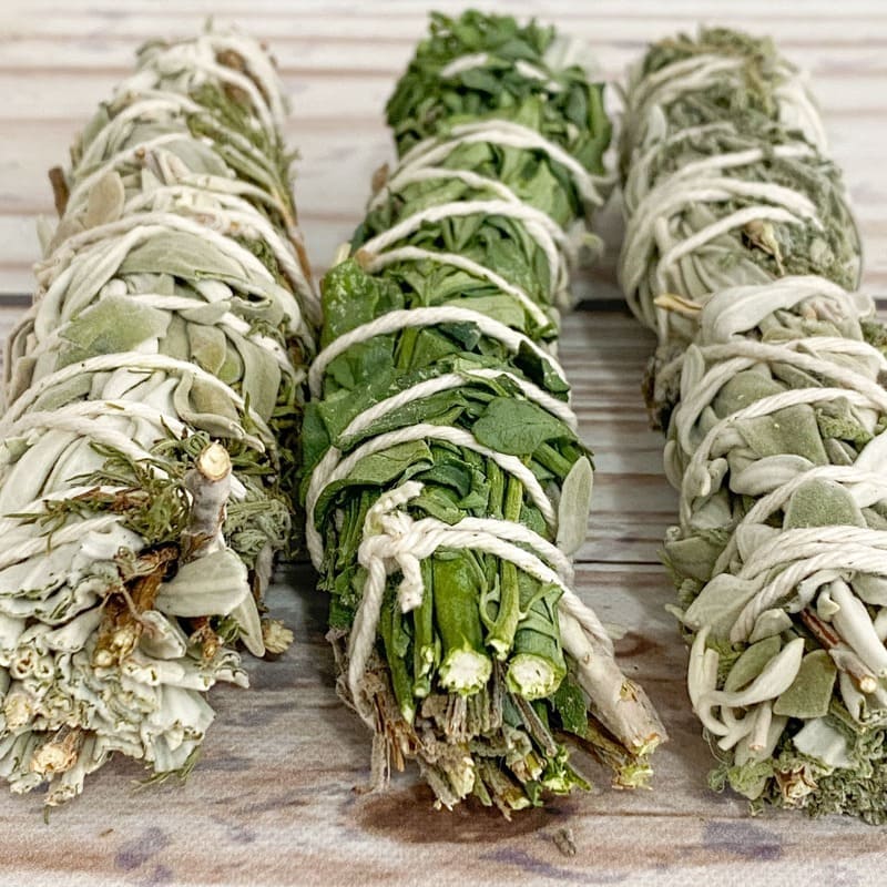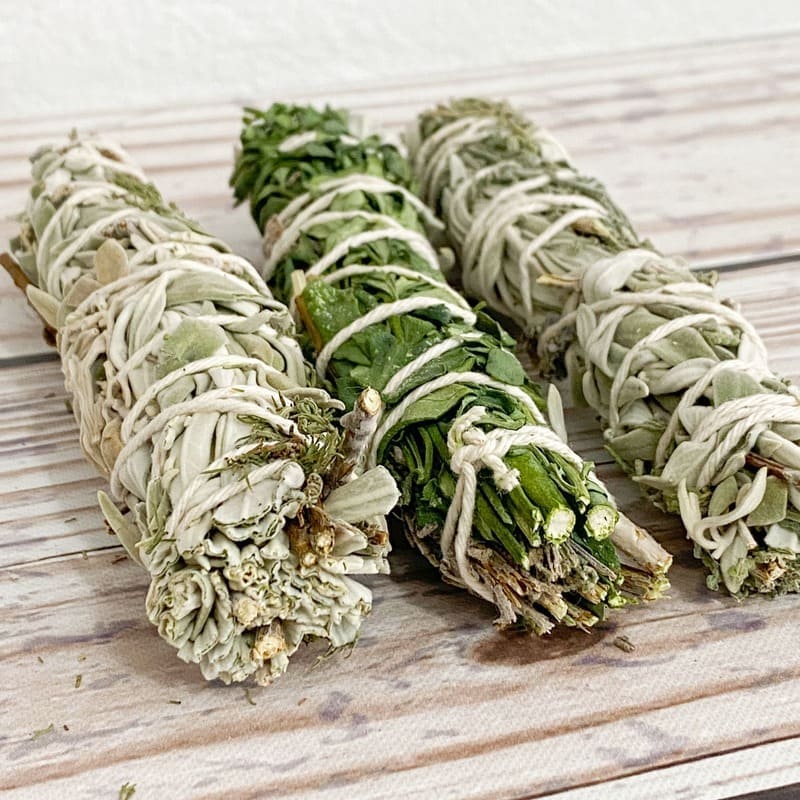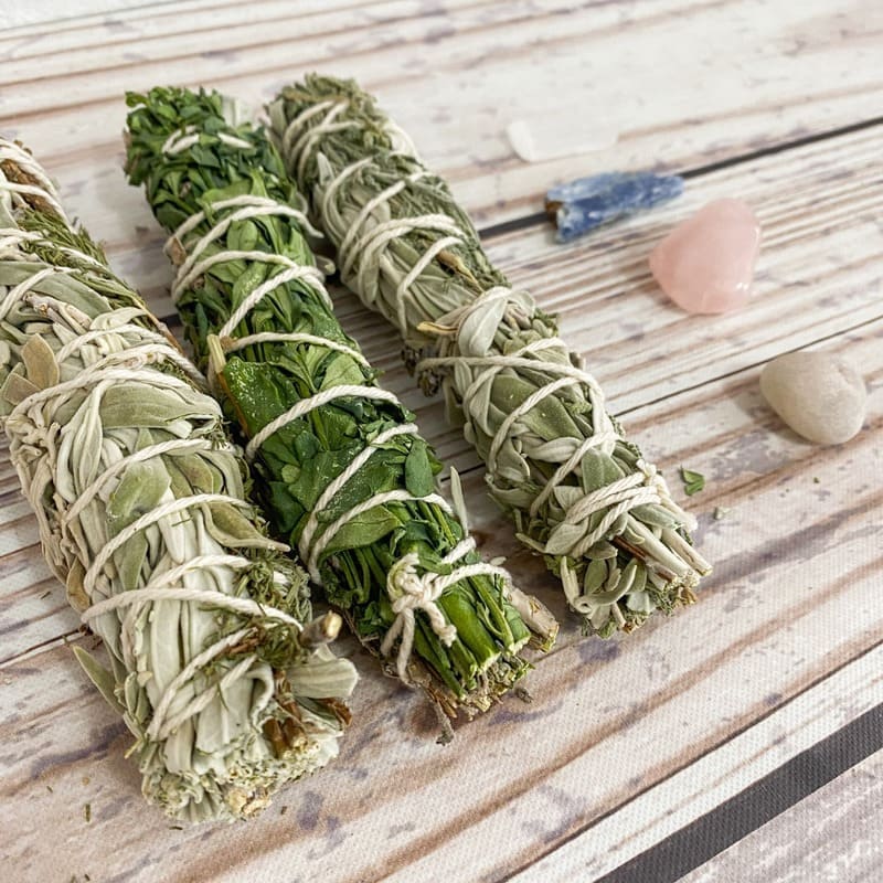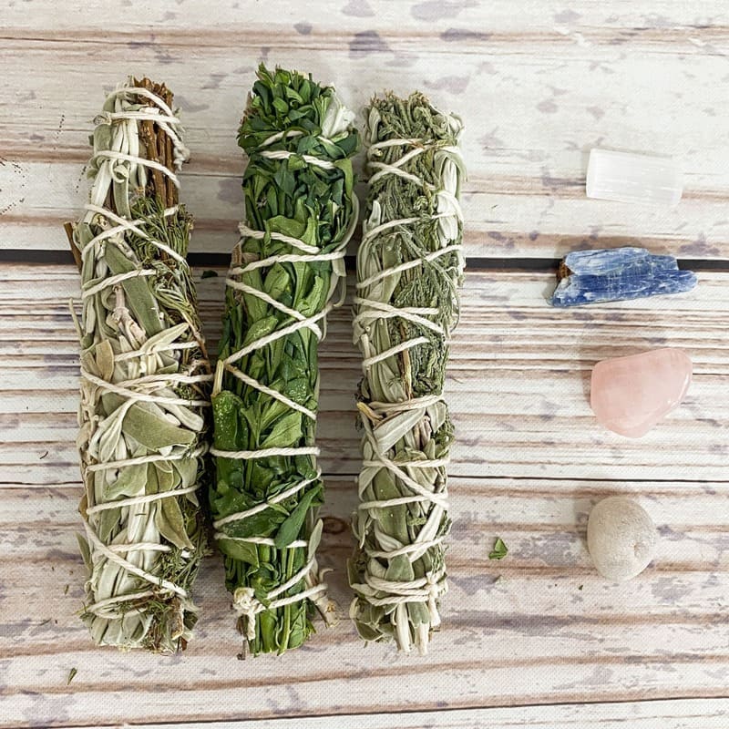 3 smudge sticks (herbal cleansing wands), traditionally used for purification rituals.