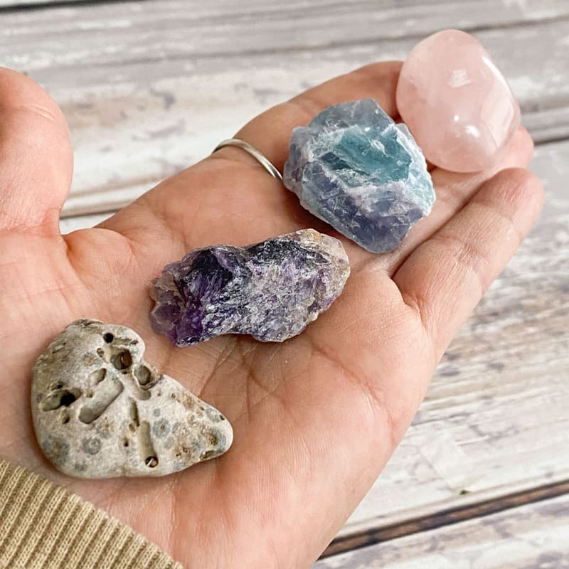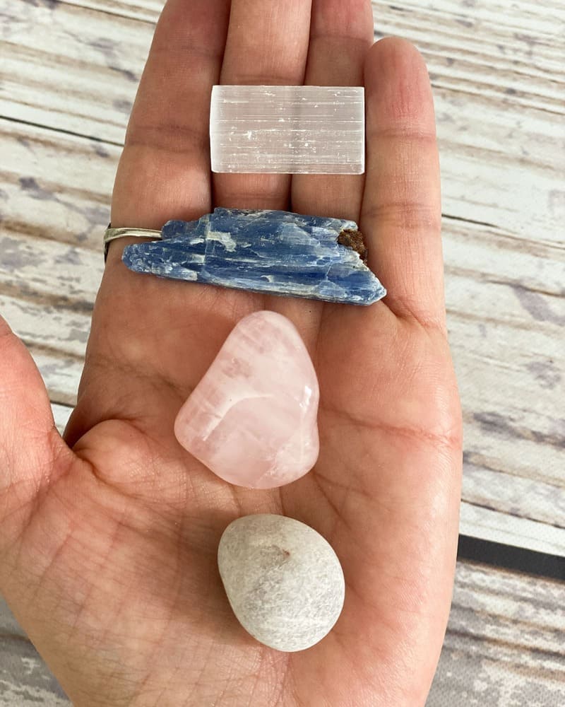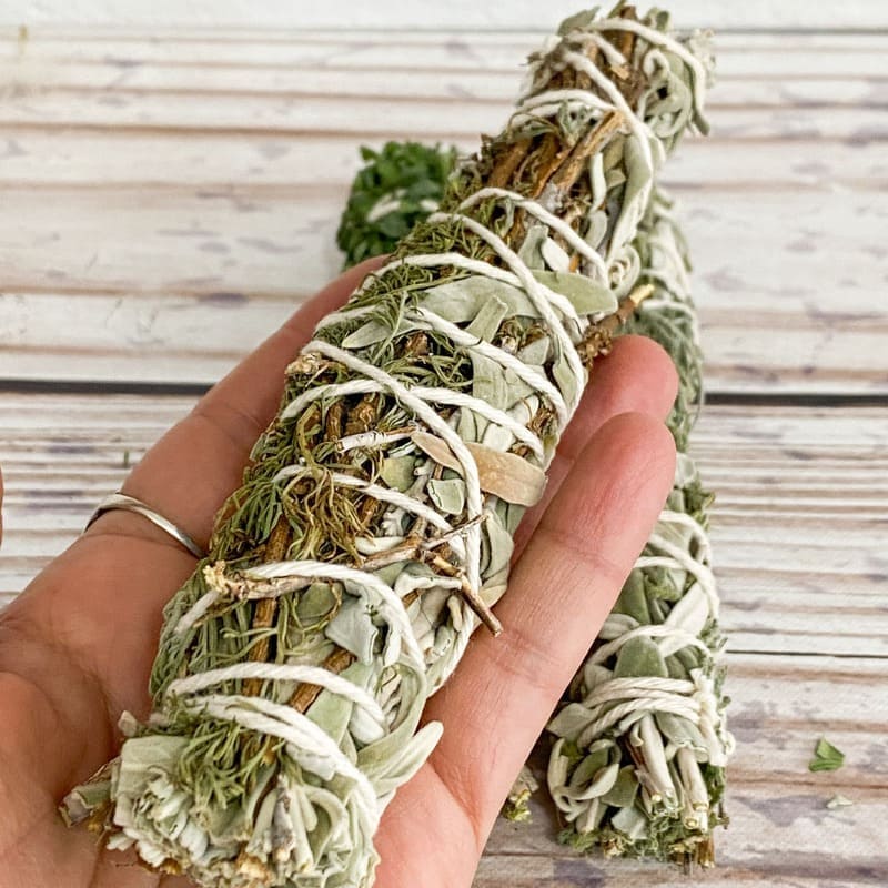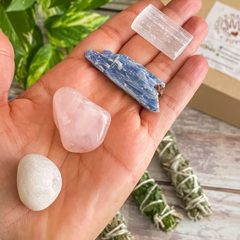Light one of the smudge sticks and allow the smoke to cleanse the environment, while placing the crystals in meaningful spots around your home or using them in meditation and protection rituals.