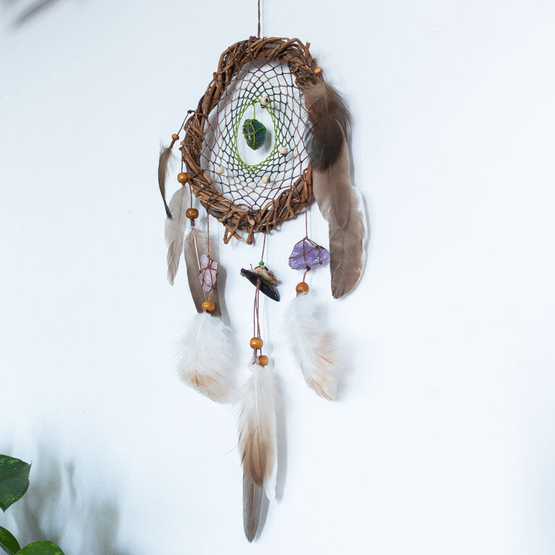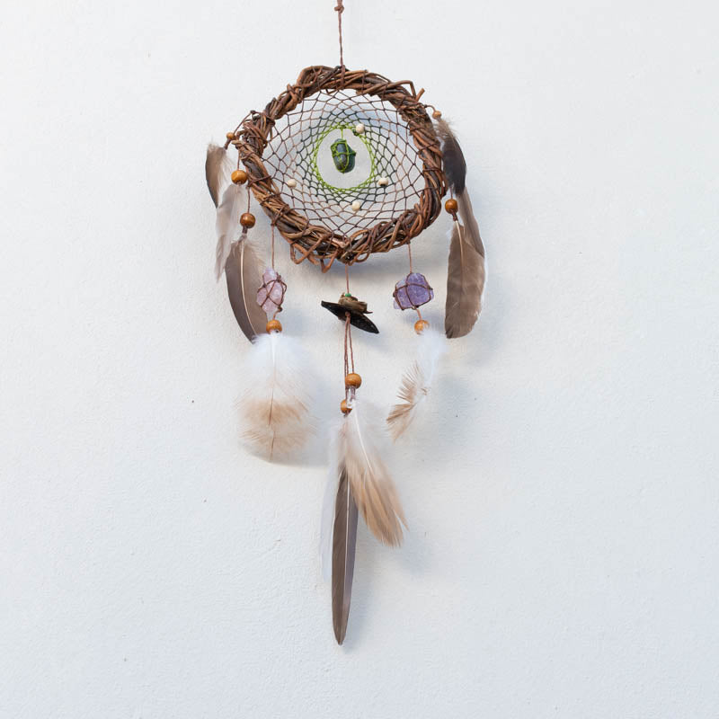 Each dreamcatcher includes one group of 3 powerful crystals, specially selected to support different energetic needs. You can choose the crystal group that aligns best with your intention or energy. We offer 5 different crystal groups, each with a unique healing focus: