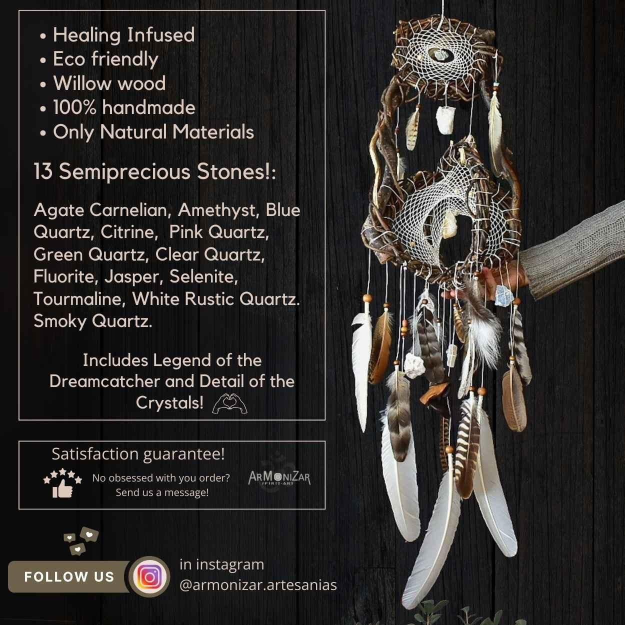 👉Cuanto mayor sea el tamaño del atrapasueños, mayor cantidad y tamaño en piedras, plumas y adornos.