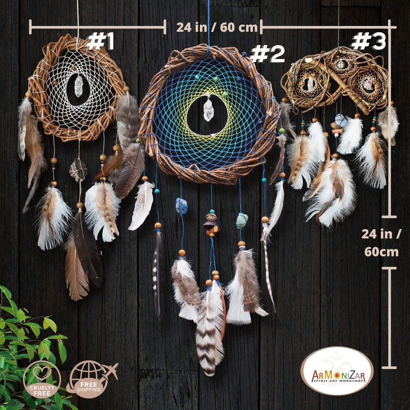 Attrape-rêves en bois, cadeau parfait pour la décoration murale de la chambre au-dessus du lit. Ensemble de 3 pièces !!! qui peuvent être accrochées ensemble ou séparément 😍. Idéal pour la guérison chamanique, le cadeau de mère spirituelle, le cadeau de pierres de protection et les décorations d'attrape-rêves en cristal de bois.