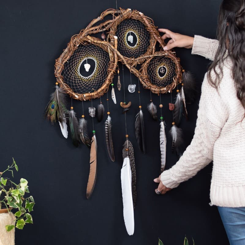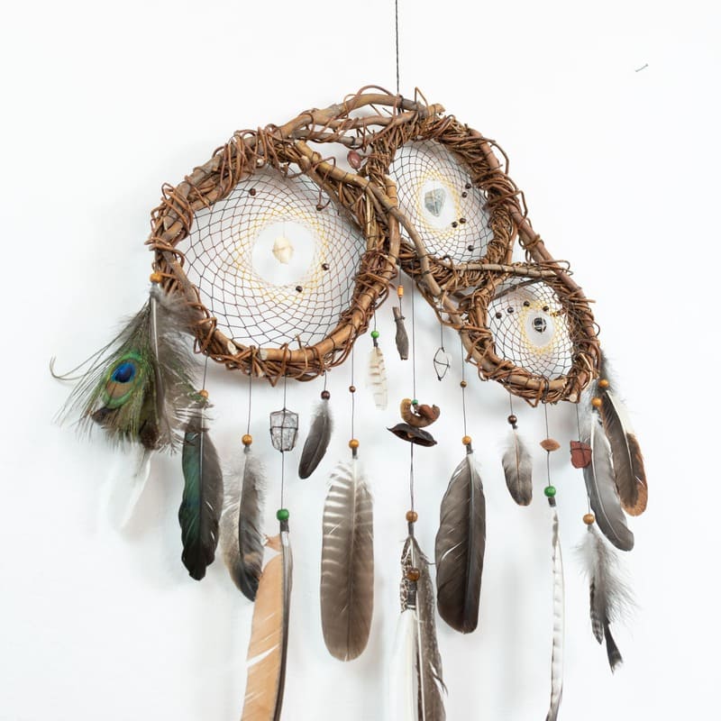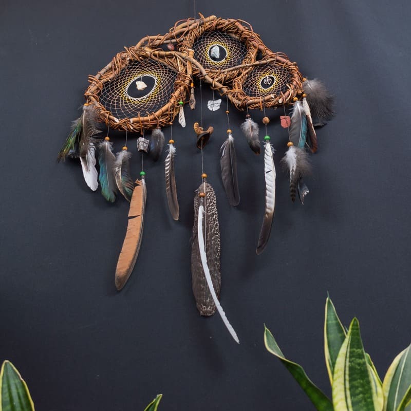 xDécouvrez la qualité et le design exceptionnels de notre attrape-rêves artisanal, créé avec une structure 3D en bois de sauce fin. Cette pièce unique en son genre comporte trois filets finement tissés, ornés de sept pierres semi-précieuses pour un nettoyage et une protection énergétique puissants.