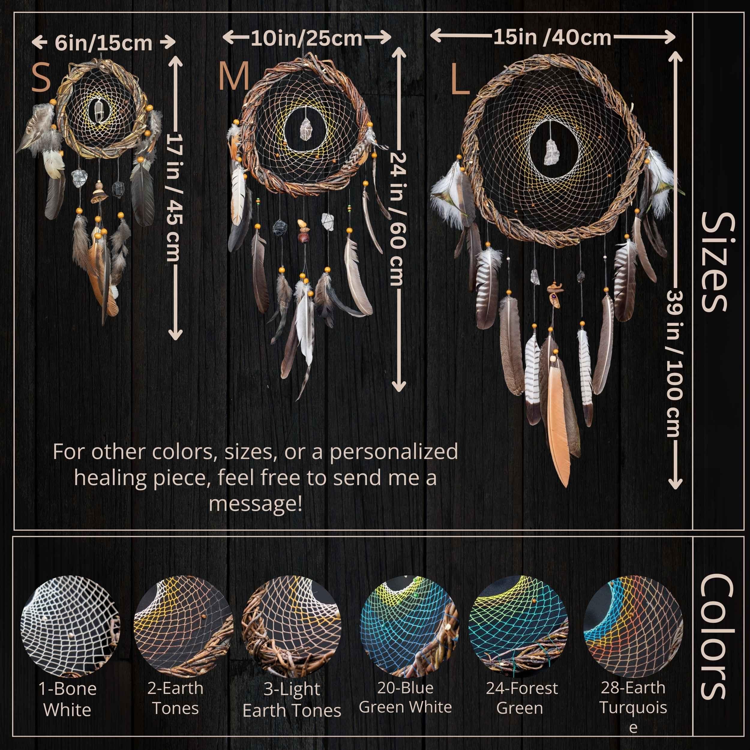 👉 Plus la taille de l'attrape-rêves est grande, plus la quantité et la taille des pierres, des plumes et des ornements sont importantes.