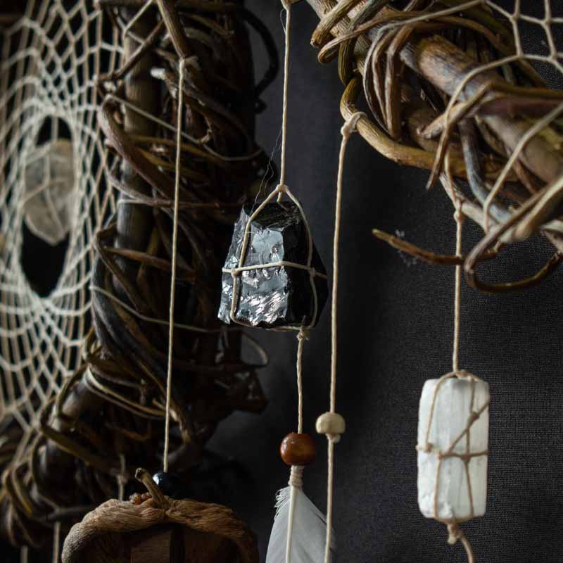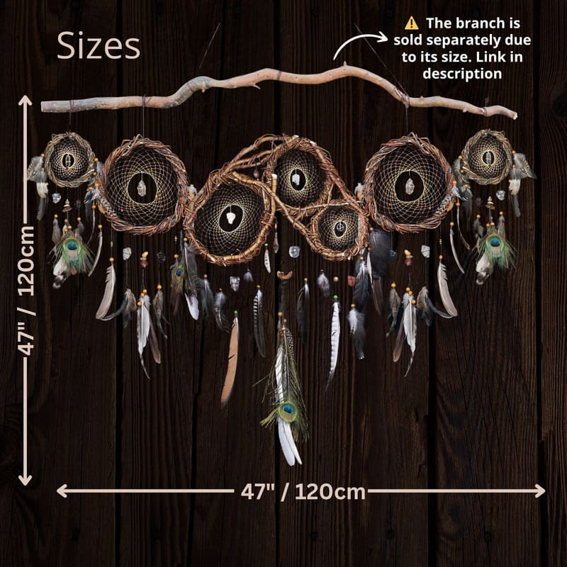 Plongez dans la beauté de notre attrape-rêves amérindien fabriqué à la main, conçu avec une structure en saule authentique. Cette pièce enchanteresse comprend 19 cristaux de guérison semi-précieux, dont l'améthyste, le quartz bleu et la tourmaline, et est ornée de plumes uniques qui renforcent sa signification spirituelle. Chaque attrape-rêves est méticuleusement fabriqué à la main, ce qui en fait un ajout parfait à votre décor bohème, à votre espace de méditation ou comme cadeau attentionné pour des occasions spéciales. Idéal pour la protection, le nettoyage énergétique et comme cadeau rustique, cet attrape-rêves est une représentation étonnante de l'art d'inspiration amérindienne et de la guérison chamanique.