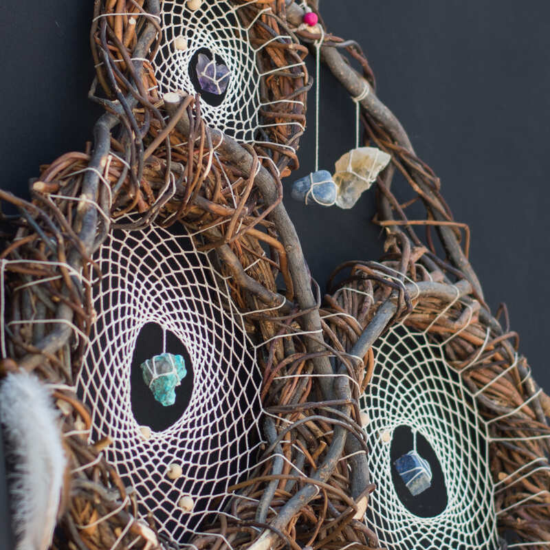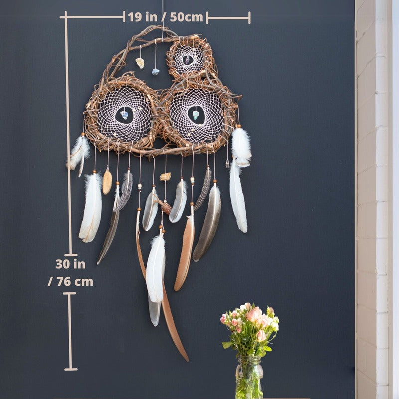 xElevate your space with this Crystal-Adorned Willow Dreamcatcher, a stunning artisan wall hanging designed for serenity and energy balance. Crafted from natural willow branches and adorned with healing crystals, it promotes relaxation and supports restful sleep. Perfect for meditation areas or bohemian-inspired decor, this eco-friendly piece blends beauty and function, making it a thoughtful gift for those seeking harmony and spiritual wellness.