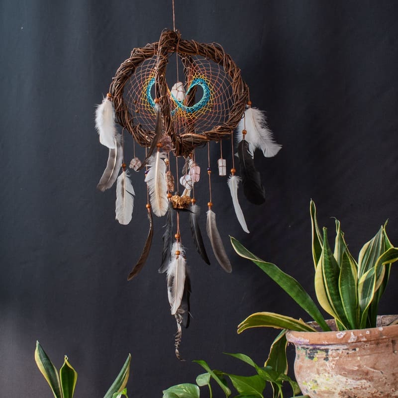 xThis mystical wall dreamcatcher is handcrafted with natural willow wood, feathers, and authentic healing crystals. More than just decor, it is an artisan feather mobile and spiritual art piece that brings harmony, balance, and beauty to any space. Perfect for bohemian homes, meditation corners, or as a meaningful handmade gift for someone you love. Each piece is unique, carrying a soulful energy that cannot be replicated.